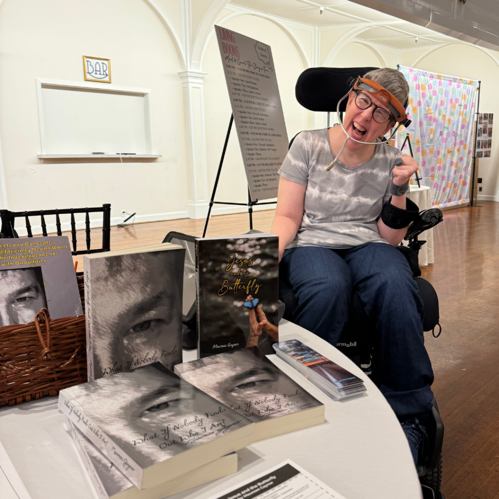 Using a device to speak for her, Maureen welcomes speaking engagements. She has spoken at many events, including the United State Congress, RHode Island State Assembly, as well as events for local non-profits, including Advocates In Action.